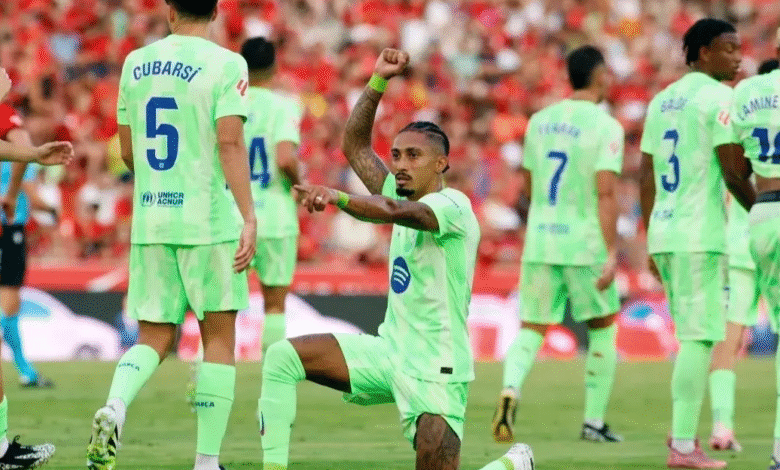 استهل نادي برشلونة حملة الدفاع عن لقب الدوري الإسباني لموسم 2025-2026 بانتصار مريح خارج الديار، بعدما تغلب على ريال مايوركا بثلاثية نظيفة في المباراة التي أقيمت مساء السبت على ملعب “سون مويكس”.