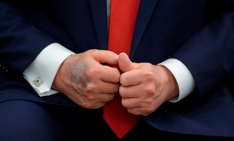 مستخدمو المنصات الرقمية أعادوا تداول صور قديمة لترامب تظهر بقعاً على يده، وقارنها البعض ببقع مشابهة ظهرت على يد الملكة إليزابيث الثانية قبل وفاتها، معتبرين ذلك مؤشراً مقلقاً.