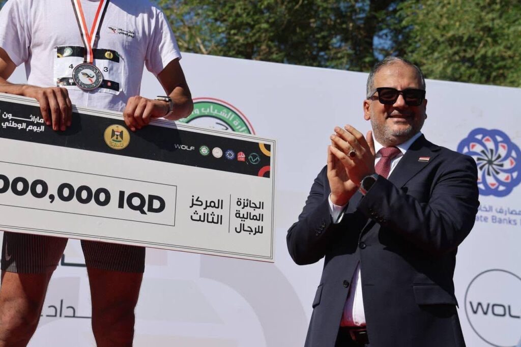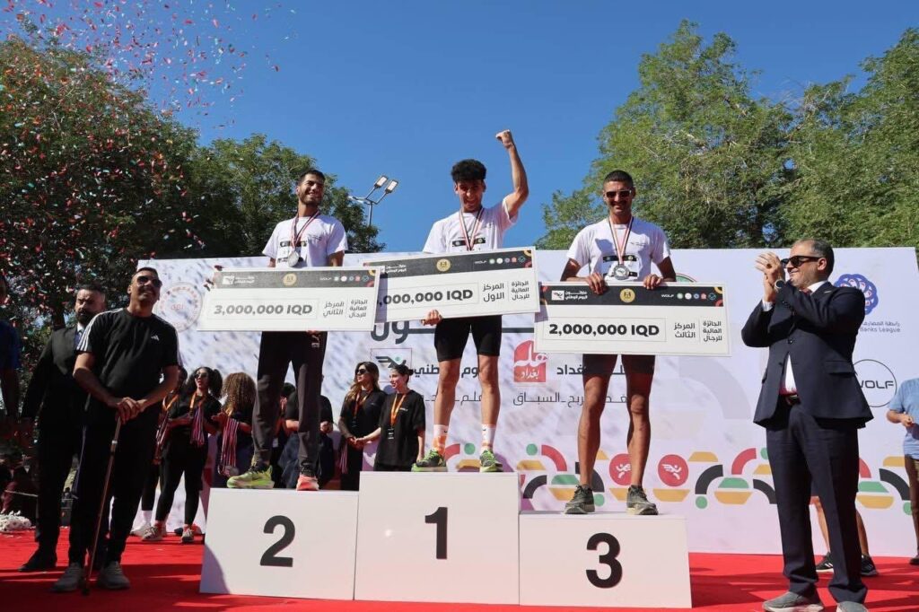 انطلقت صباح اليوم الجمعة من ساحة الاحتفالات في بغداد فعاليات الماراثون الرياضي الذي نظمته رابطة المصارف العراقية الخاصة بالتعاون مع وزارة الشباب والرياضة بمناسبة اليوم الوطني، بمشاركة أكثر من ألفي متسابق من الجنسين ومن مختلف الأعمار والمحافظات.